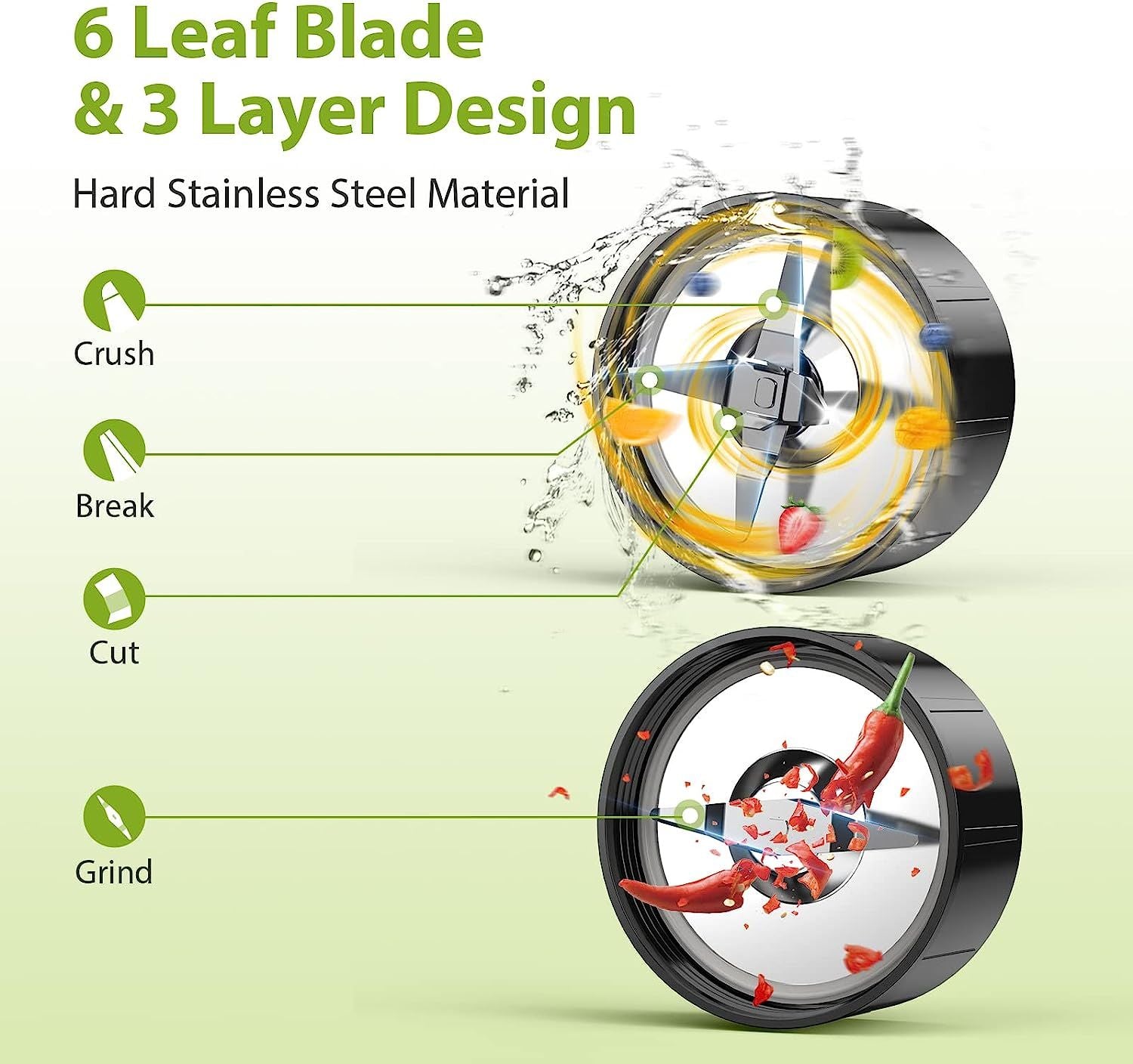 Powerful Countertop Blender:Efficient personal smoothie maker with engine output up to 850 watt motor reaches 23,000 RPM for high speed breaking, powerful enough to easily blend fruits, Nuts, coffee beans, ice cubes and more. Making healthy shakes and smoothies, sporty protein drinks, baby food puree, fruit and vegetable juice, grinding coffee, spice, and beans...