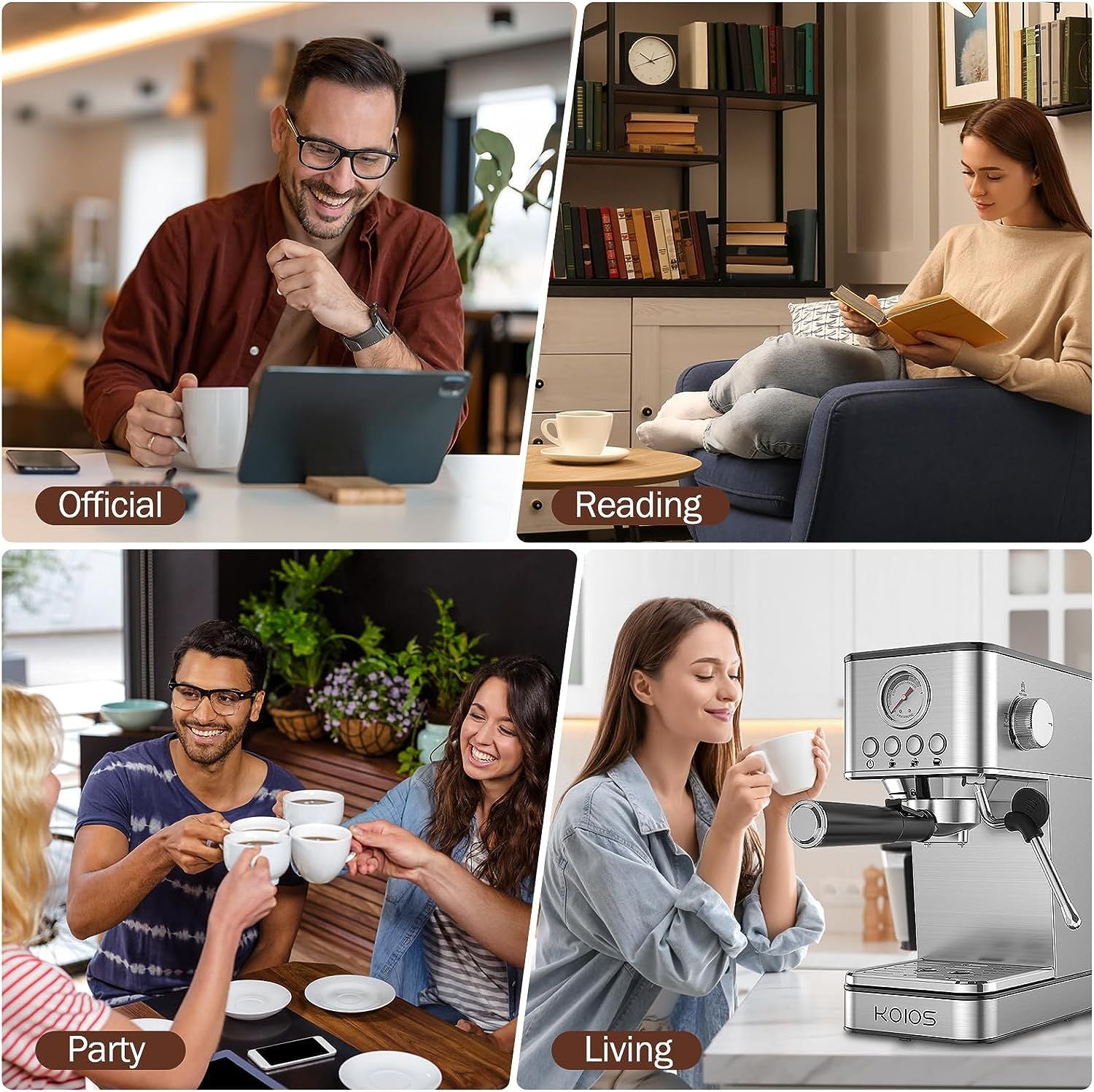 KOIOS Espresso Machines, 20 Bar Semi-Automatic Espresso Maker with Foaming Steam Wand, 1200W Stainless Steel Espresso Coffee Maker for home, 58oz removable Water Tank, PID Control System - Silver is backordered and will ship as soon as it is back in stock.