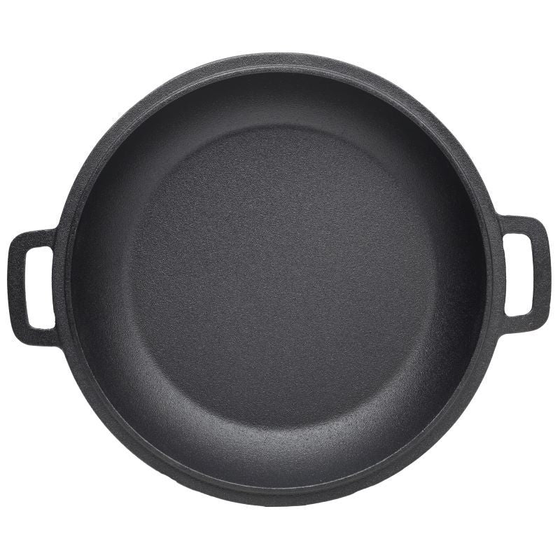 Selection of high quality pure cast iron, the rounded flat bottom design allows for more even and efficient heating.