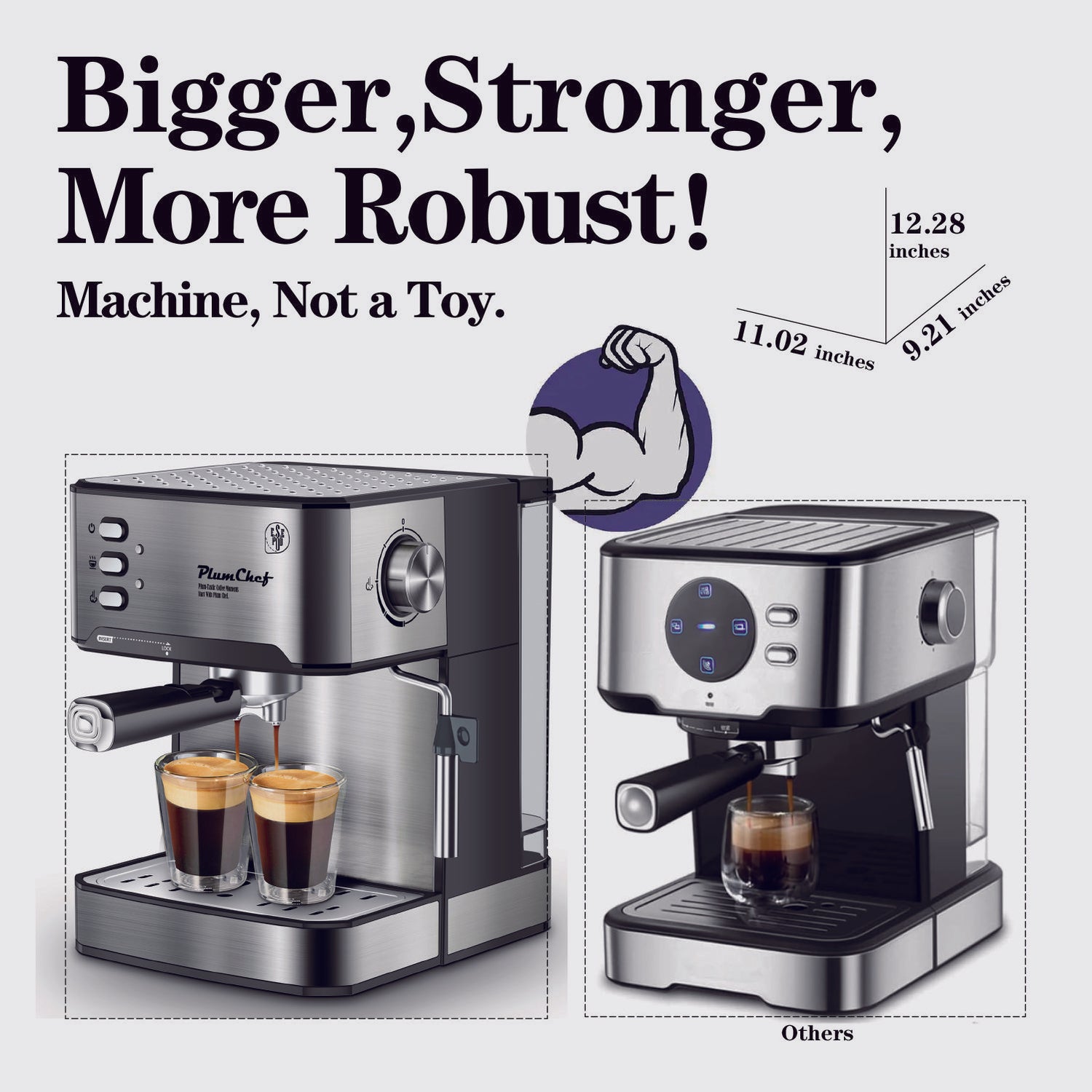 PlumChef Espresso Machine 20 Bar Professional Compact Homehold Coffee Espresso Maker with Milk Frother Steam Wand 54oz Water Tank Low Noise and Fast Coffee Machine