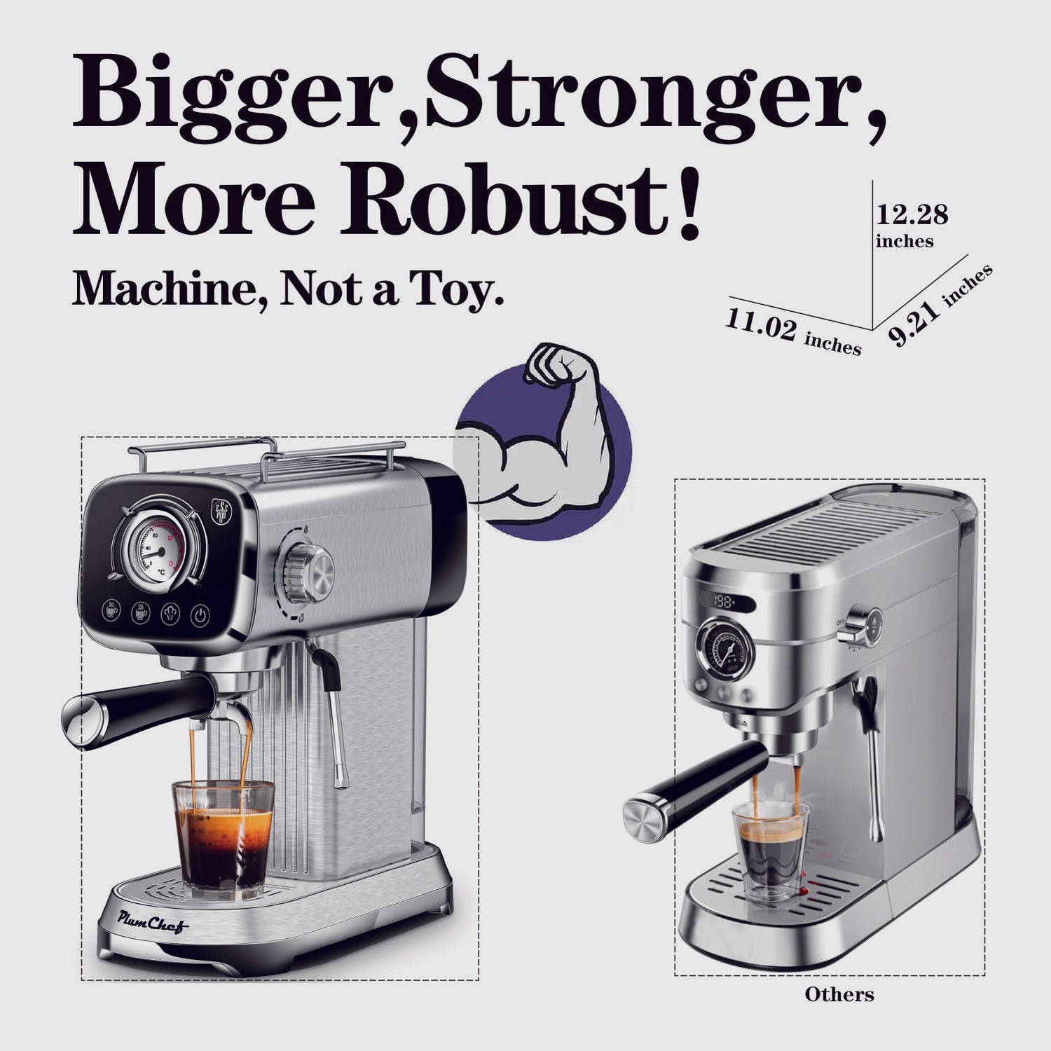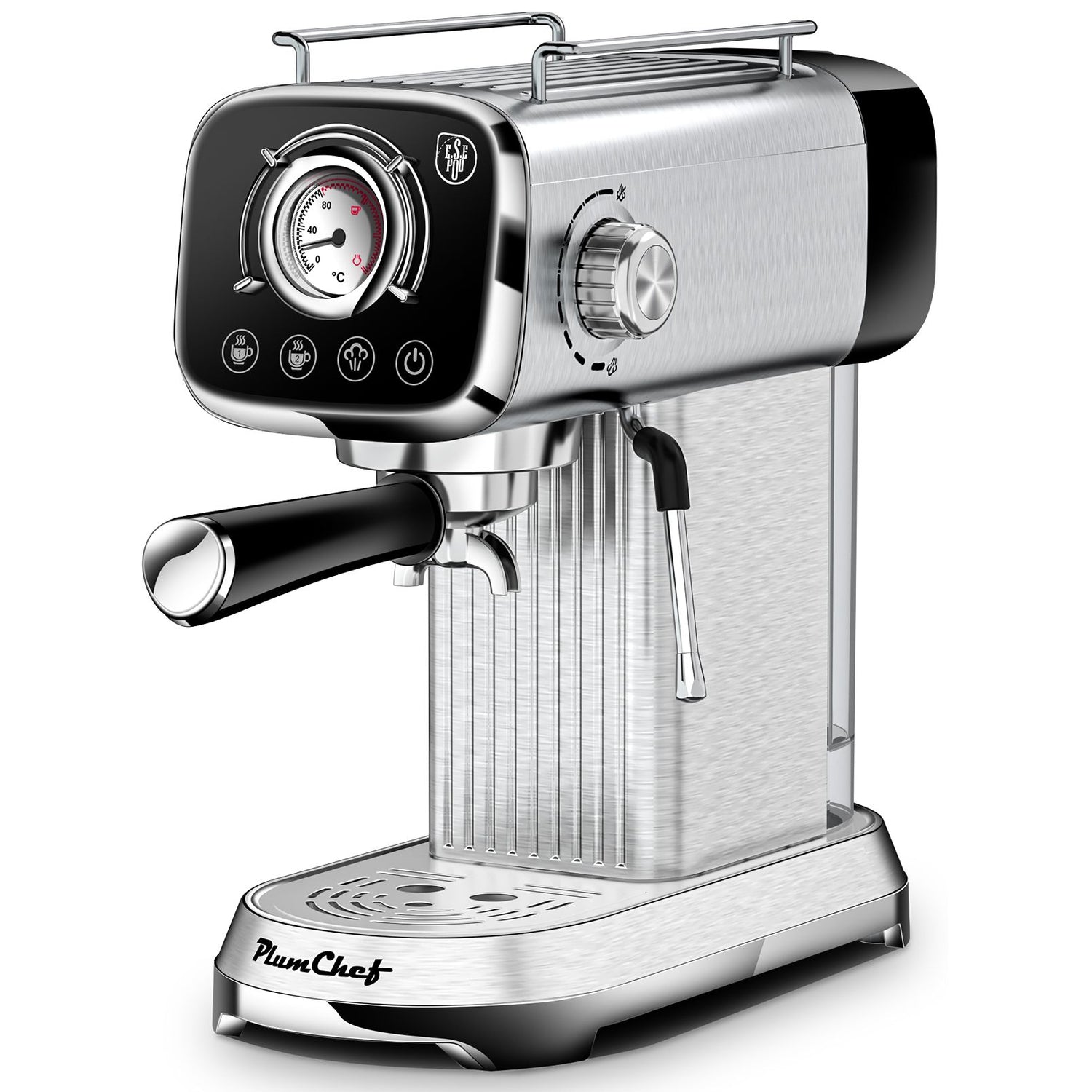 PlumChef Espresso Machine 20 Bar Professional Compact Household Coffee Espresso Maker with Milk Frother Steam Wand Temperature Gauge 34oz Water Tank Low Noise Coffee Machine for Latte Cappuccino