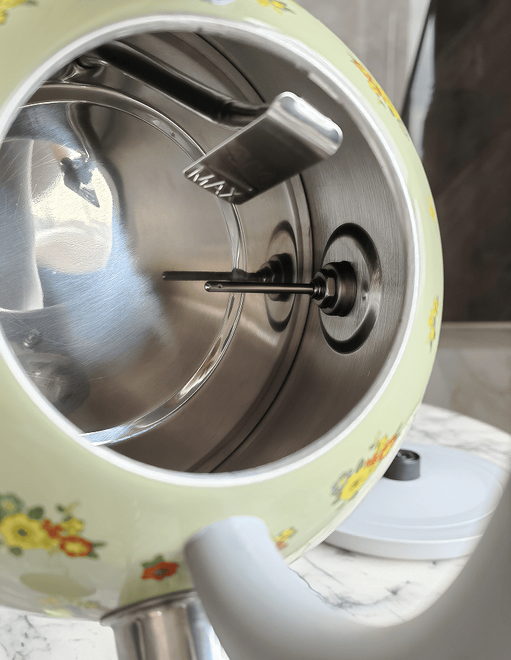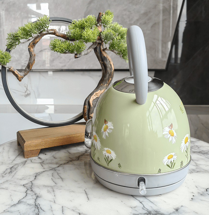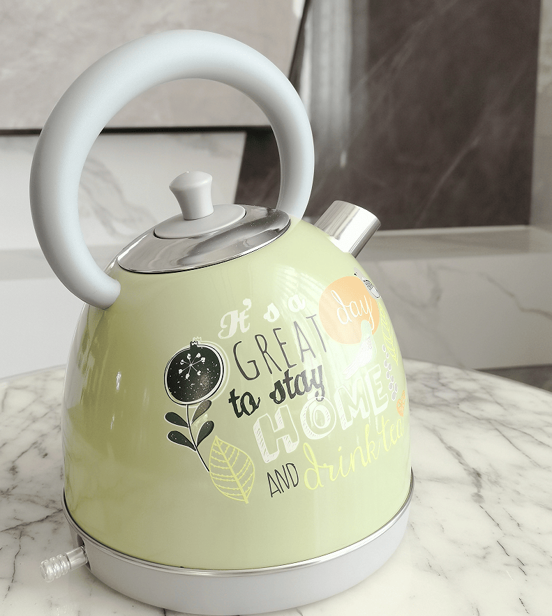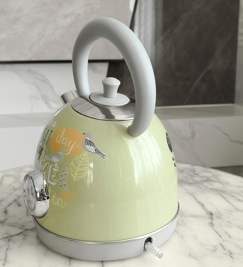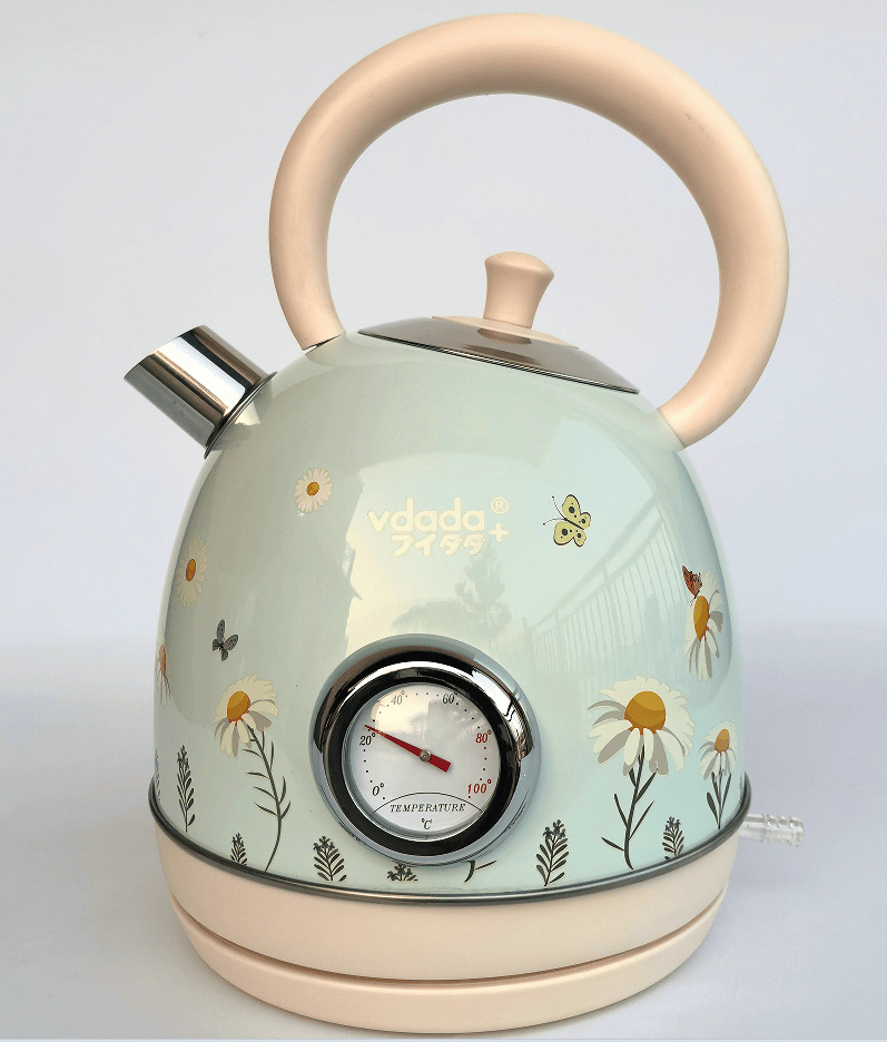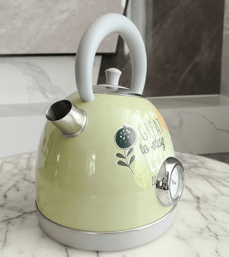 SKU: PS3018N2Ta 1850W Electric kettle, instrument thermometer kettle, flower watermark painting kettle rapid boiling water heater SUS304 LED lamp capacity 1.8L wide outlet design water filter spout can add water design high security without BPA wire storage base automatically closed and dry cooking protection