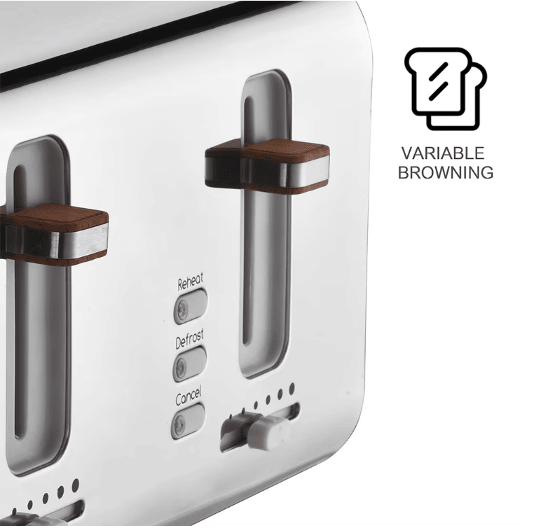 7 color Settings: 7 levels of adjustable brown Settings with 5 basic functions (Toast/Bagel/Thaw/Reheat/Cancel). With a high lift rod, you can easily remove the bread slices and check the baking progress at any time