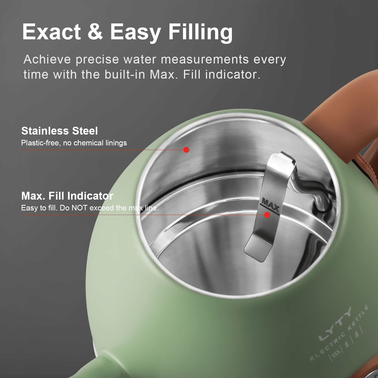 Safety 304 stainless steel interior: The electric kettle is made of 304 stainless steel, with a gooseneck outlet, no plastic and no chemical lining. The water boiled by the kettle is no pollutant.
