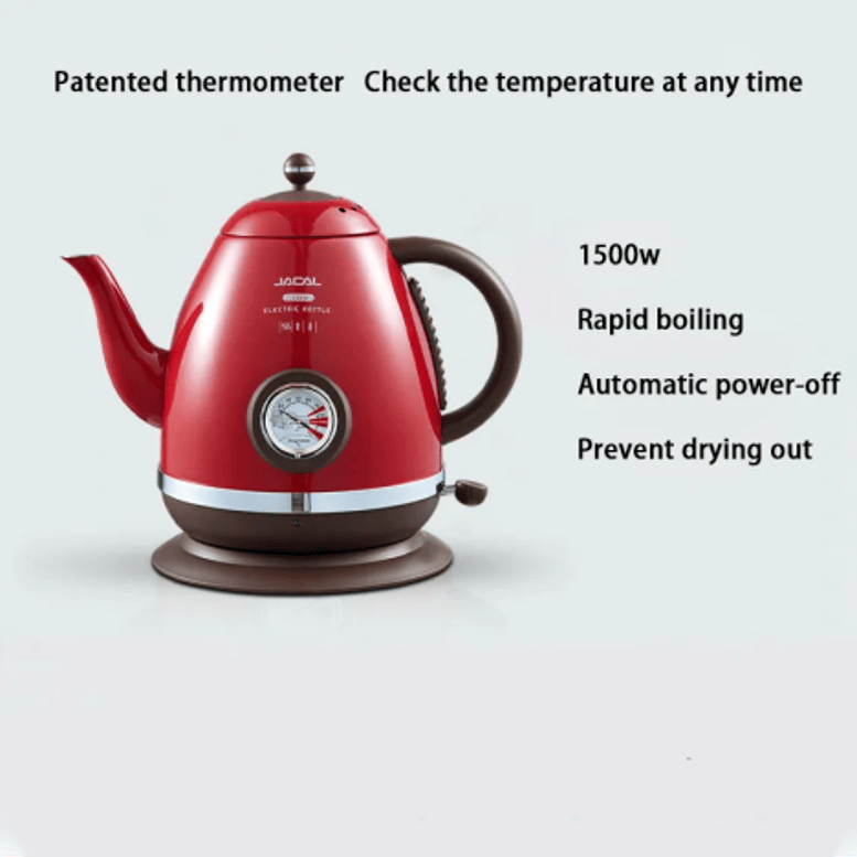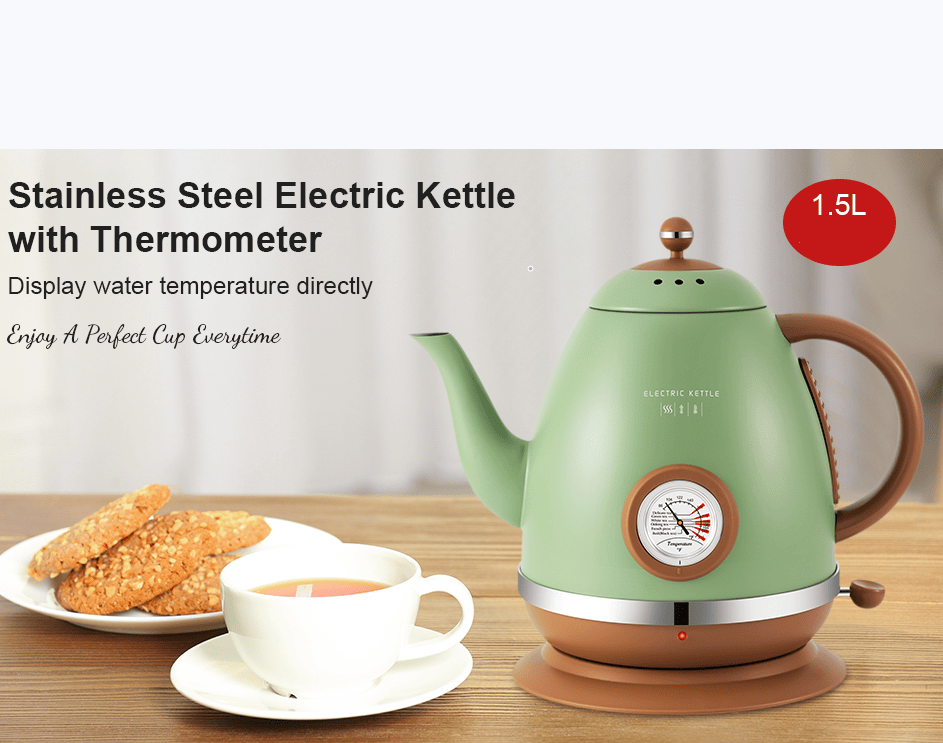 SKU: PSE303 1500W Electric kettle instrument type dial thermometer kettle electric kettle 1.5L gooseneck coffee teapot hot water boiler European boutique kettle quickly boiling 360 degrees rotating base separation without BPA automatically closed SUS304, classic home gift, heat insulation anti-hot handle