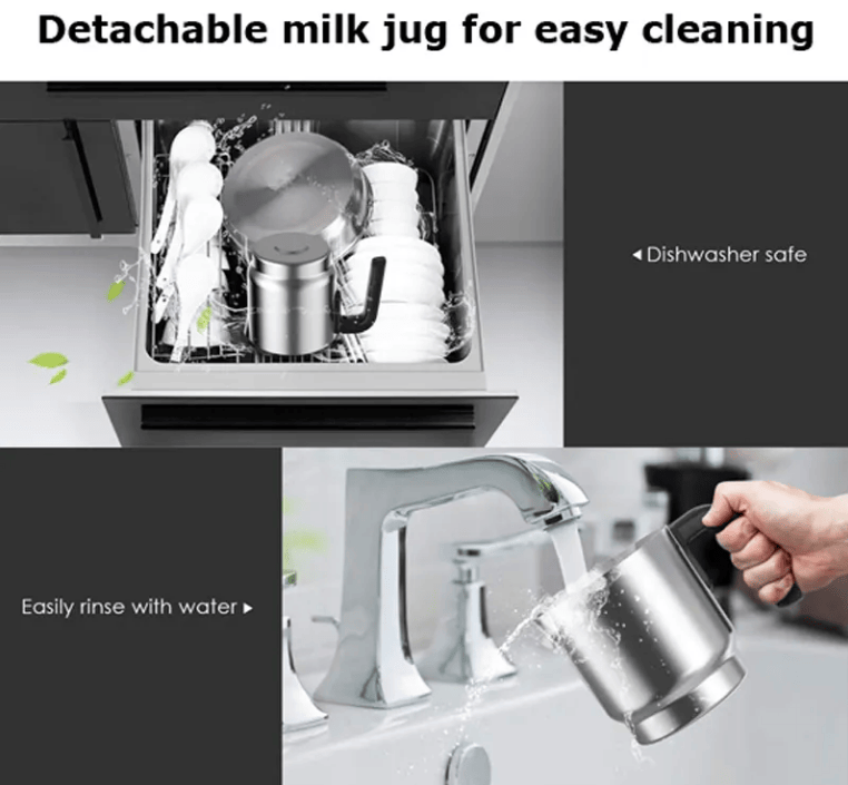 -Dishwasher safe, removable s / s milk can can be placed in the dishwasher for easy cleaning
