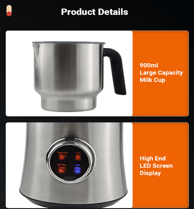 -Large capacity: 900 ml (tank), milk foam up to 100-350 ml,