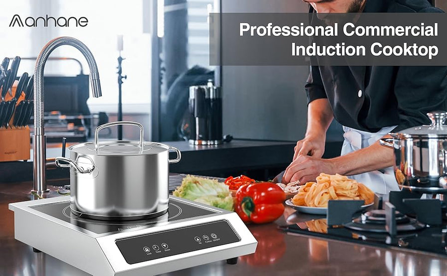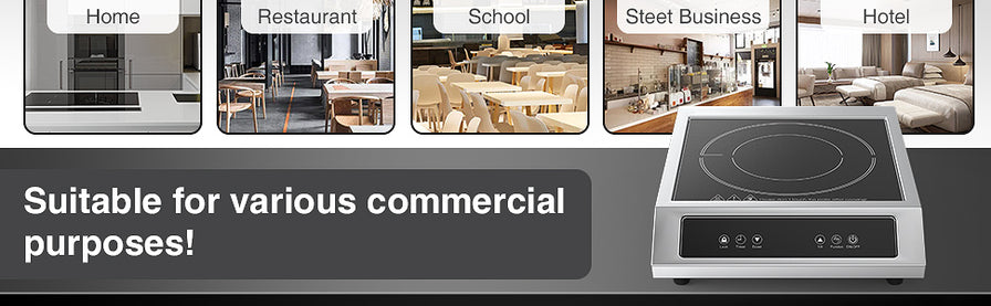 - š³ćCompatible with Magnetic Cookwareć: This commercial induction cooktop is suitable for enamel, cast iron, and stainless steel, Heats to the desired temperature in just seconds. Produces heat directly in the cookware with the less residual heat in your kitchen. Durable professional design with stainless steel body brings a longer life cycle. Note: Using incorrect cookware will cause the burner to malfunction.