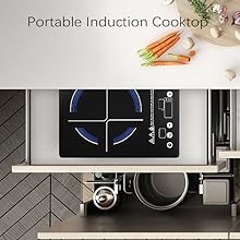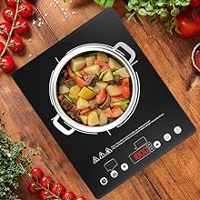 - 【Ultra Thin Design】The design not only makes this induction cooktop very eye-catching in your kitchen but also easy to carry than electric stove. It is lightweight and compact for easy handling and storage. Portable induction burner is perfect for dorm rooms, home kitchen, RV, boats, etc.