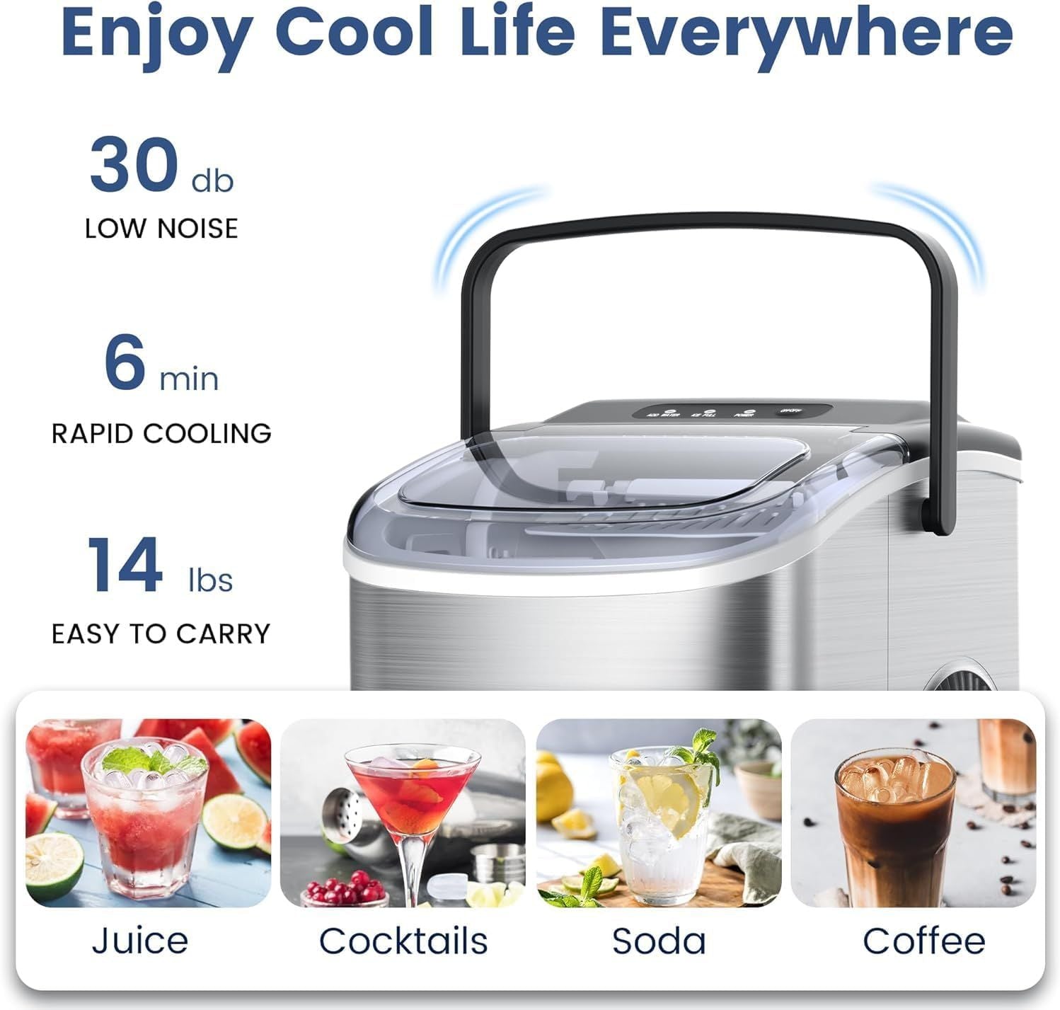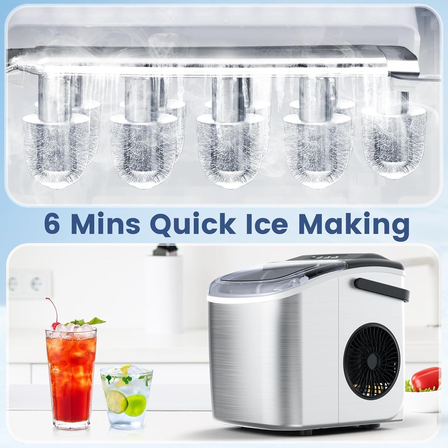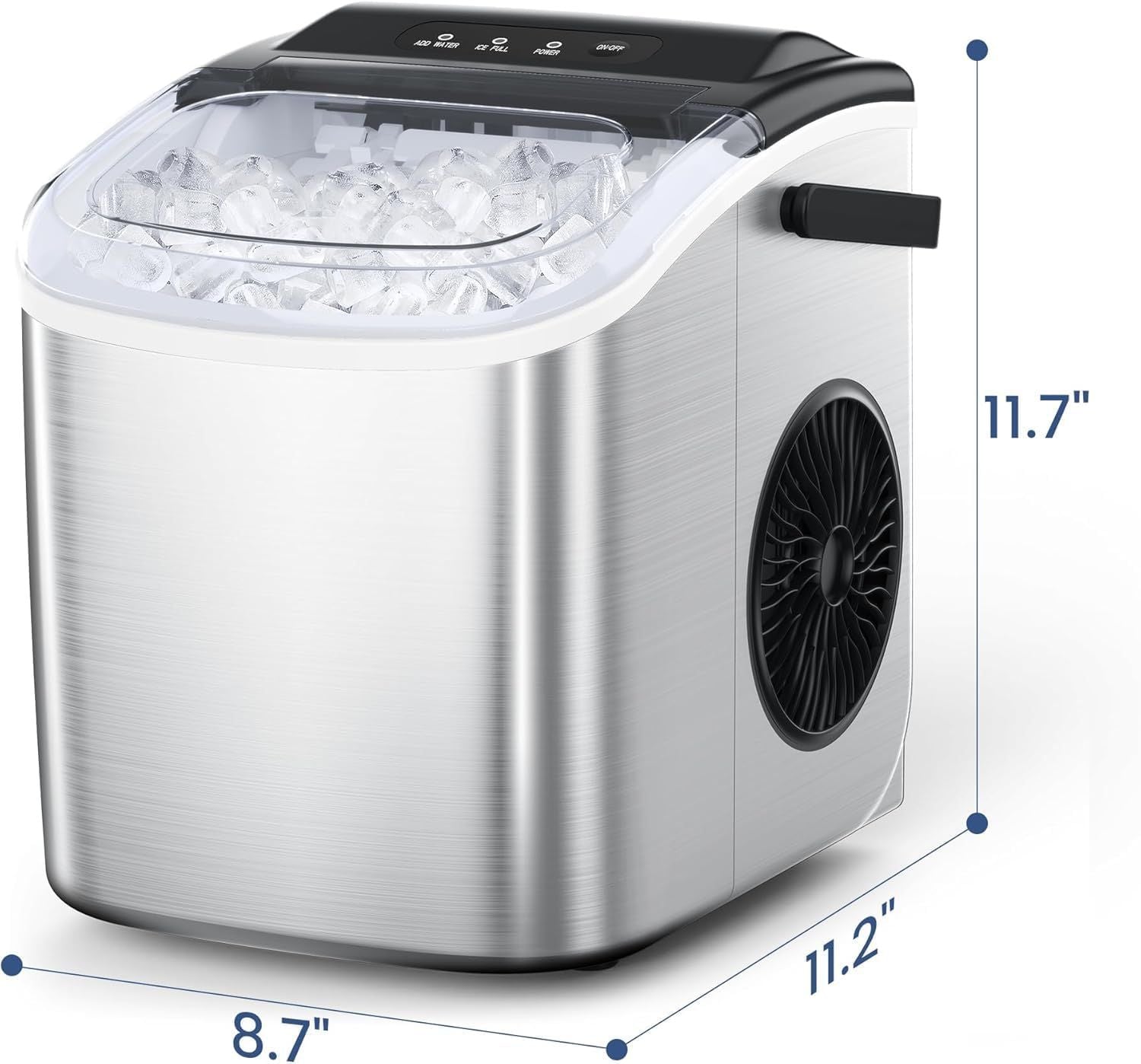 Stainless Steel Countertop Ice Maker, 26.5 lbs/24 Hours, 9 Cubes Ready in 6-8 Minutes, Self-Cleaning Ice Maker, Bullet Ice