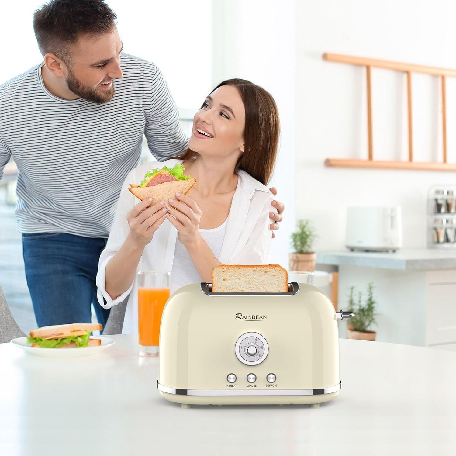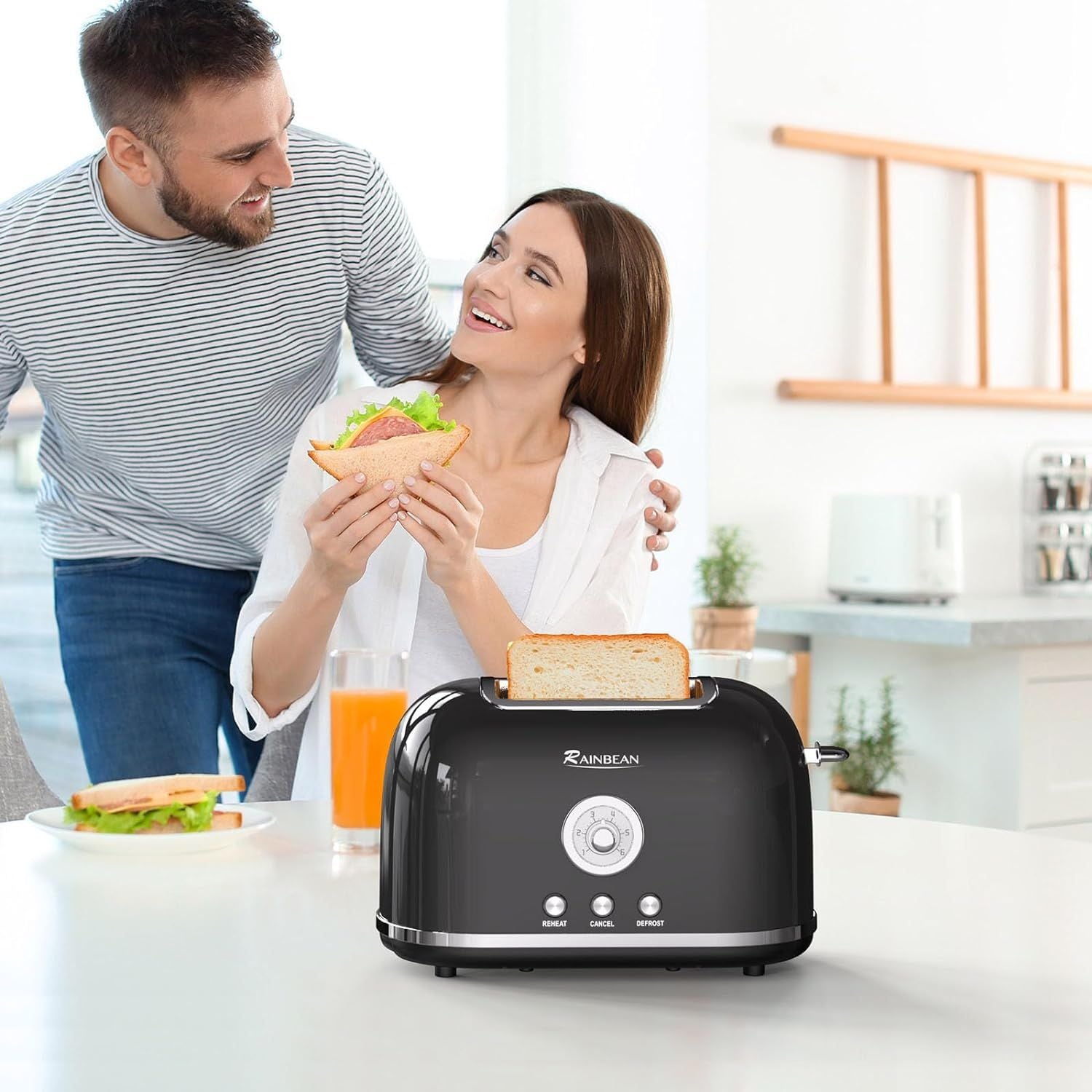 Multifunctional Toaster: This 2 slice toaster has 4 toasting functions, such as REHEAT, BAGEL, CANCEL and DEFROST. "BAGEL" fulfills your desire to bake only one side; "DEFROST" lets you enjoy soft taste of bread like it's just made; "CANCEL" helps you to become the master of time and stop at anytime; "REHEAT" function, where you can reheat your bread.