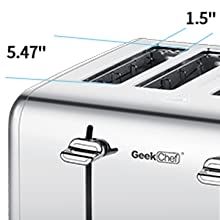 [1.5" EXTRA-WIDE 4-SLOT TOASTER] Extra Wide 4-slice Toaster for you, toasting thin bread, thick bagel, English Muffin with Easy!