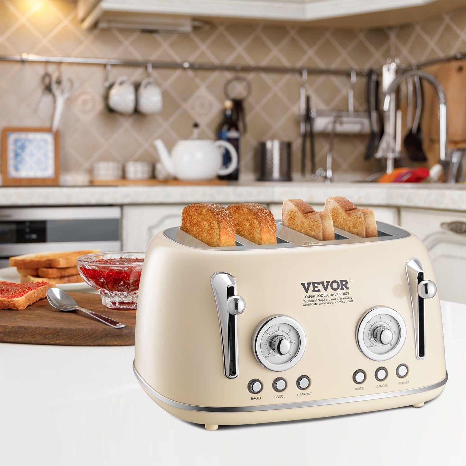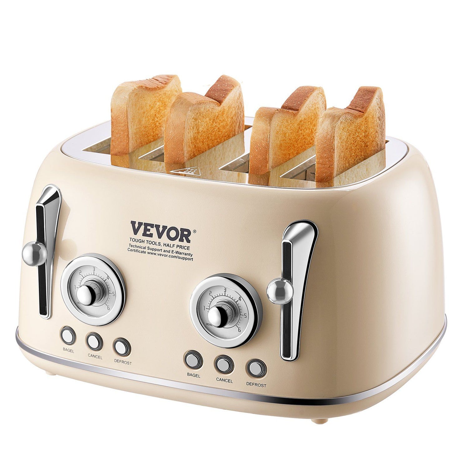 VEVOR Brushed Stainless Steel Toaster, 4 Slice, 1650W 1.5'' Extra Wide Slots Toaster with Removable Crumb Tray 5 Browning Levels, Cancel Defrost and Bagel Functions for Toasting Bread Bagel Waffle - Beige / 1650 W is backordered and will ship as soon as it is back in stock.