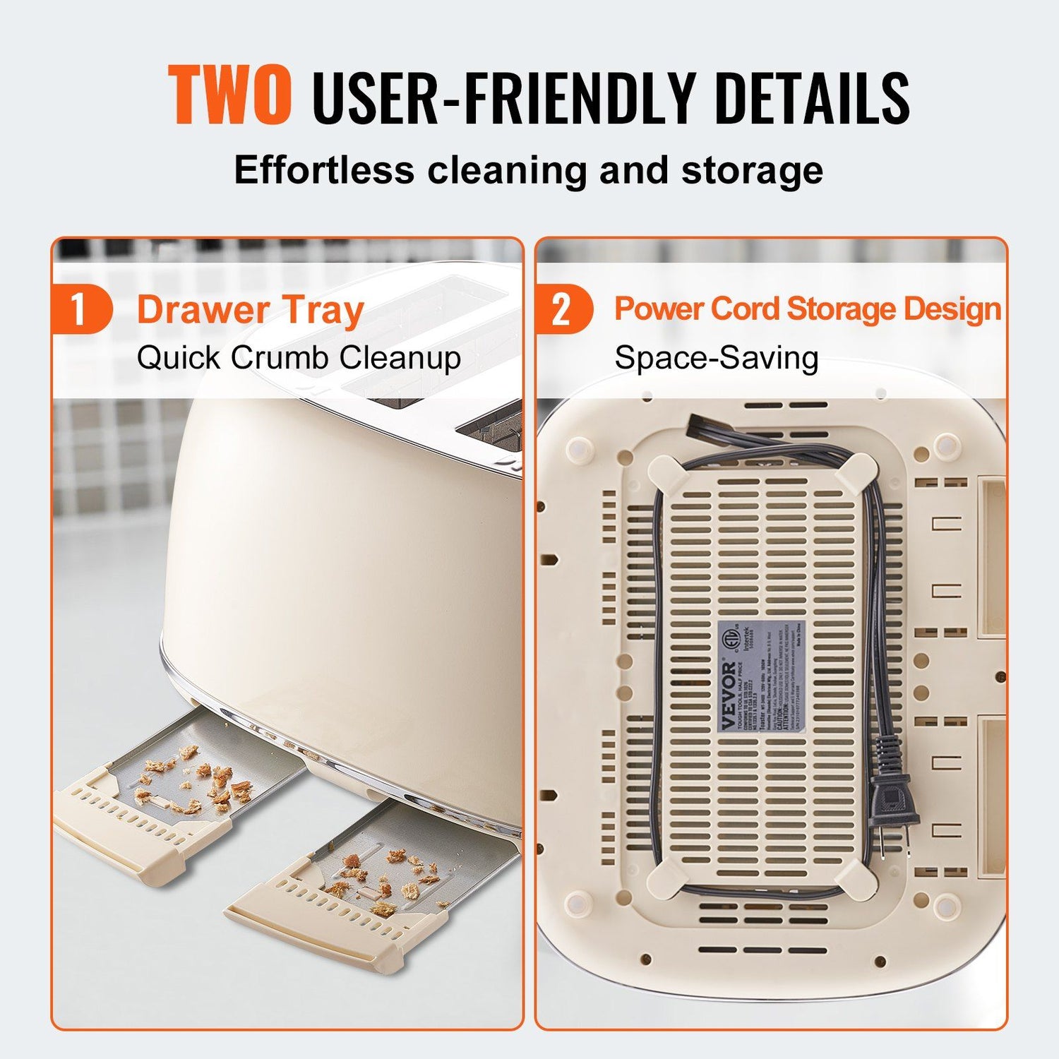 Incredibly User-Friendly Design: Simply place your bread slices into our 2 slice toaster slots, and adjust the knob to toast. When toasting is complete, the lever will automatically raise your toast for easy retrieval. With a detachable crumb tray, cleaning up after your meal is hassle-free. Enjoy the convenience and simplicity of our user-centric toaster!