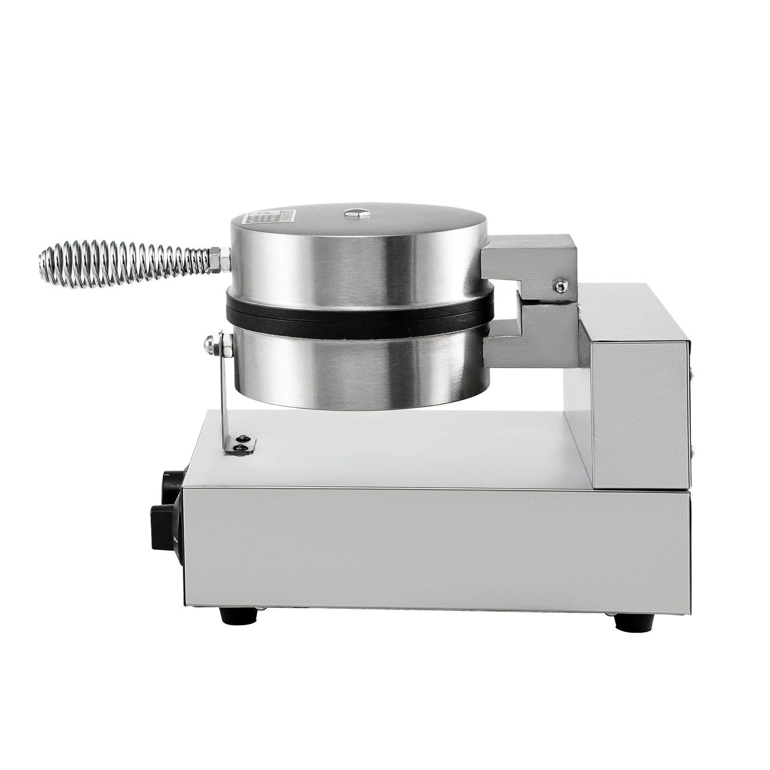 VEVOR Commercial Round Waffle Maker Nonstick 1100W Stainless Steel 110V Temperature and Time Control, Suitable for Restaurant Bakeries Snack Bar Family, Non-rotated