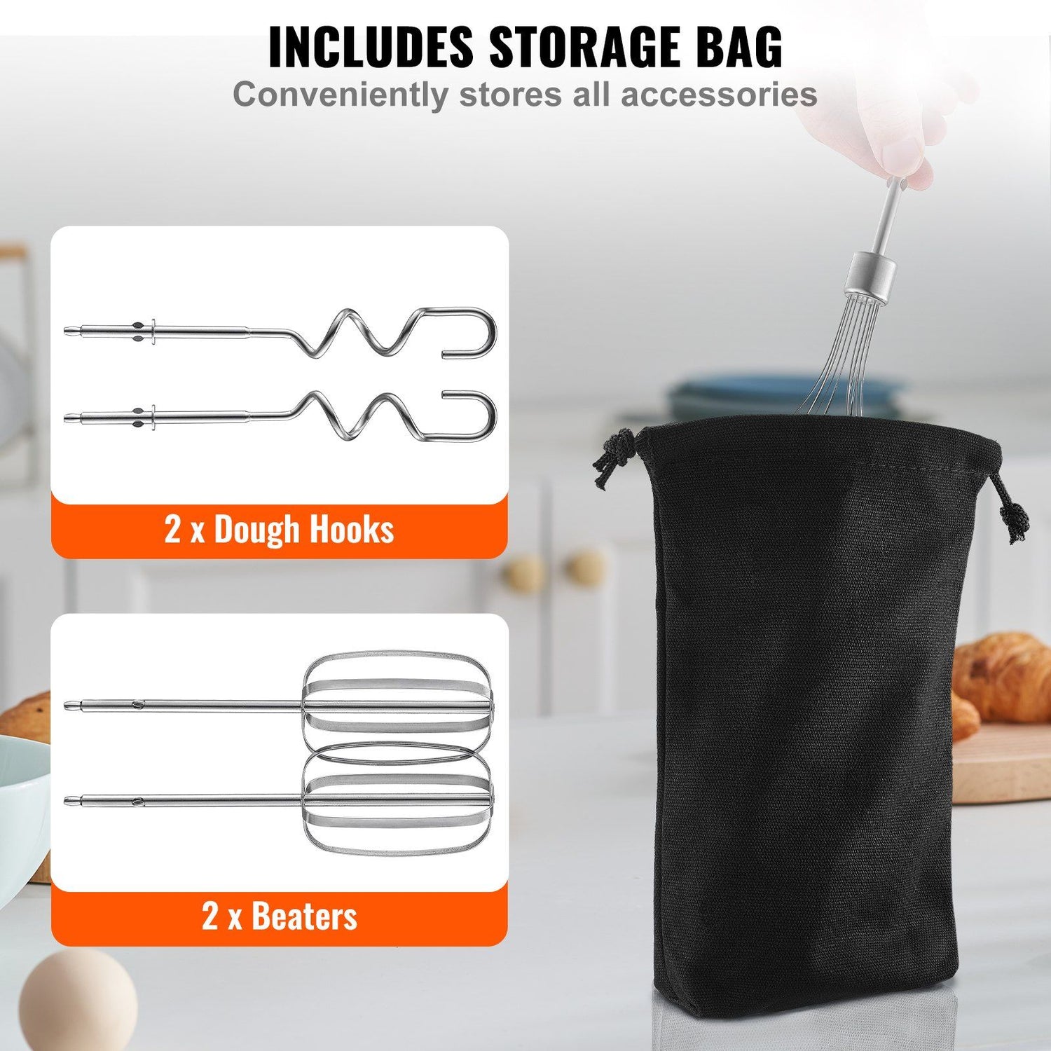Convenient Storage Bag: This mixer electric handheld comes with a storage bag for extra storage space to conveniently hold all your accessories, which not only keeps your countertop organized but also reduces the likelihood of accessories getting lost or misplaced, making it easy to find everything you need while also saving space.