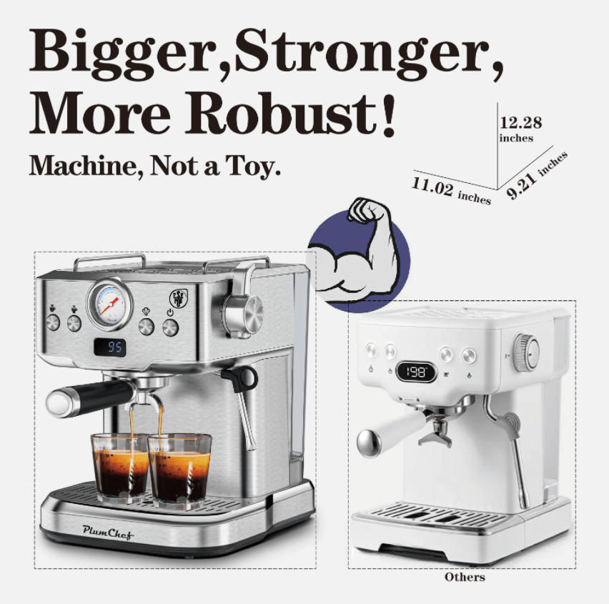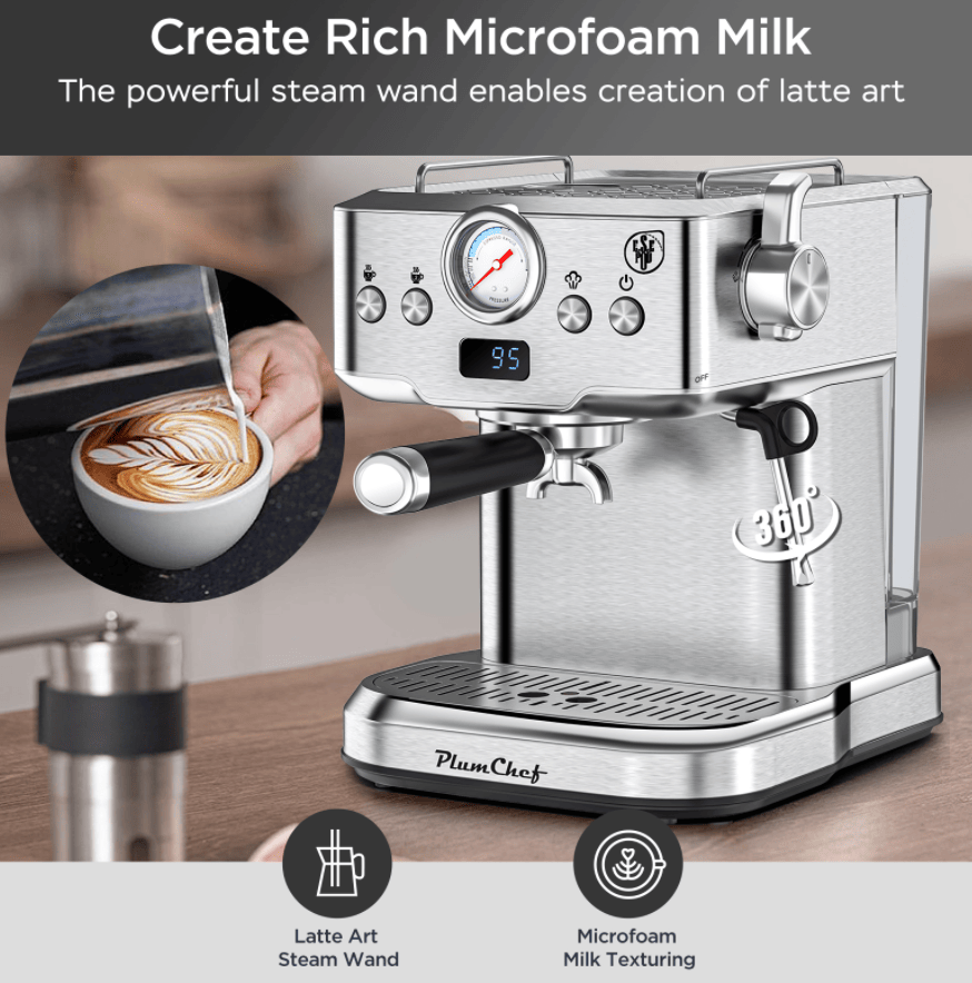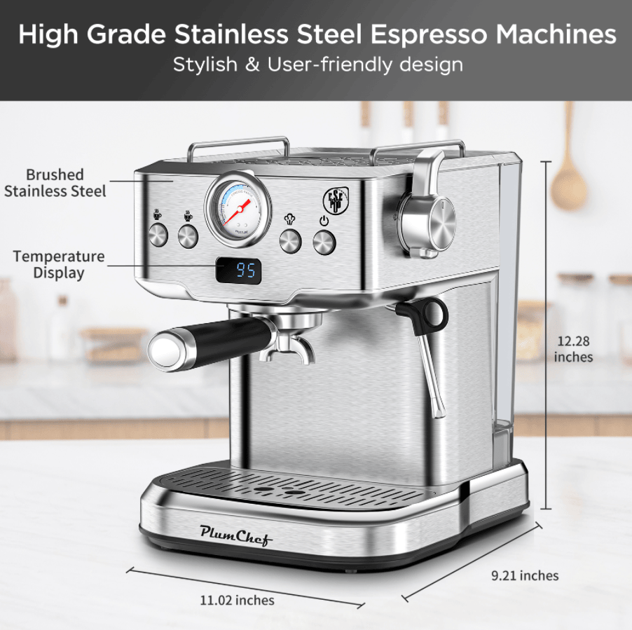 SKU: W1002P292436 1350W Semi-automatic Coffee Machine 20Bar Professional Concentrated Coffee Maker with Milk Foamer, Single Shot and Double Shot, Compatible with ESE POD 1.5L Water Tank, Capsule Filter and Foam Maker Steam Wand Single Shot and Double Shot Pressure Gauge Display, Capable of Making Cappuccino, Latte, and Macchiato with a Mobile Water Tank Electronic Buttons Hammer 51mm Touch Sensing Steam Function with Foamer, Ideal for Home Coffee