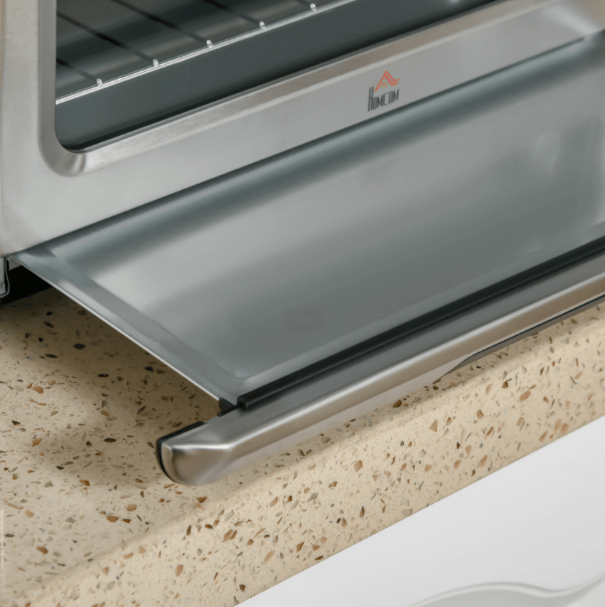 PLENTY OF ROOM TO COOK: This air fryer toaster has a 21 Qt capacity with two racks that allow four slices of bread or 9" pizza and won' t take up much space on your counter.