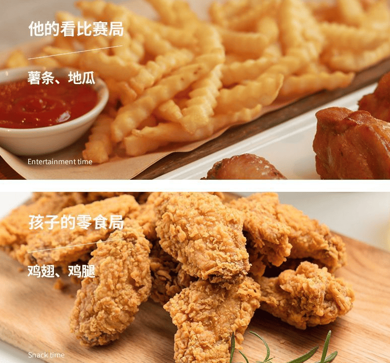 Usage: Chicken wings, Seafood, Barbecue, Steak, Whole chicken, French fries, Pizza, Dessert, Popcorn, Dehydrated grilled fish, Cupcakes